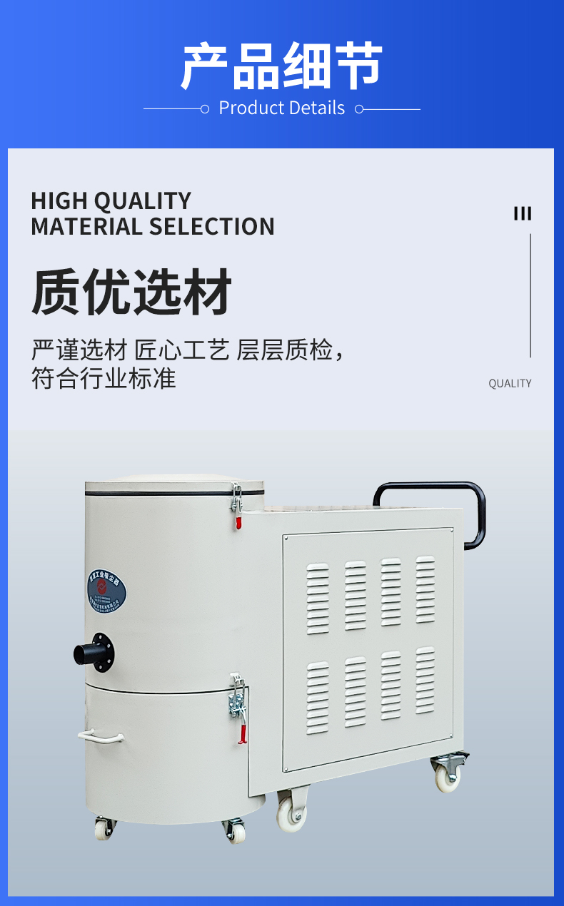 采用分离式储存结构,具有吸尘效率高、使用寿命长、储尘容量大、低噪音、操作方便、性能稳定、能连续工作等显著特点;
