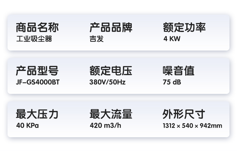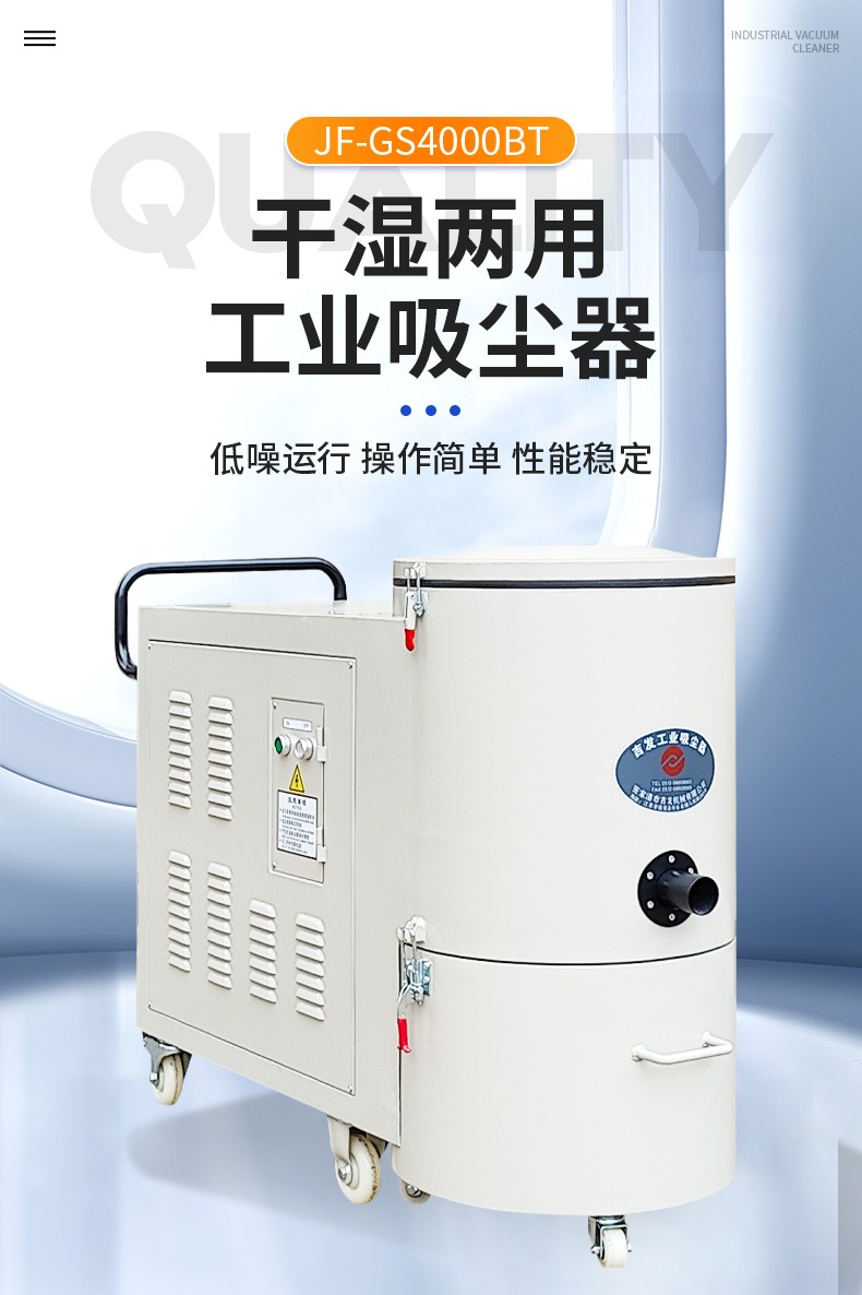 吉发JF-GS4000BT4KW大功率机械电子加工切削打磨工业吸尘器,本产品置室内使用,广泛应用于砂轮机、金属切削、小型喷砂、铸造、化工、建材、制药等有关设备所产生粉尘的吸除及回收。
